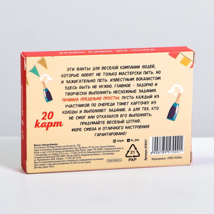 Купить игра для компании "фанты звезда бокала" 20 карт от 120 руб. с доставкой до пункта выдачи в Бодайбо. Интернет магазин ДекаМаркет. Оплата при получении.